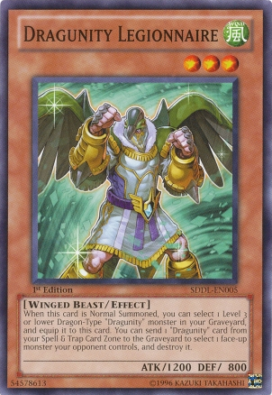 When this card is Normal Summoned, you can select 1 Level 3 or lower "Dragunity" Dragon-Type monster in your Graveyard, and equip it to this card. You can send 1 "Dragunity" card from your Spell & Trap Card Zone to the Graveyard to select 1 face-up monster your opponent controls, and destroy it.