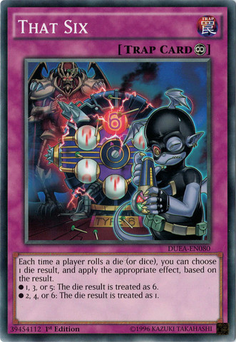 Each time a player rolls a die (or dice), you can choose 1 die result, and apply the appropriate effect based on the result. •1, 3, or 5: The die result is treated as 6. •2, 4, or 6: The die result is treated as 1.